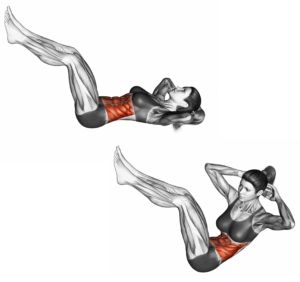 Упражнения за страничен корем на земя – лягате на земята, повдигате краката, ръцете зад главата и повдигате горната част на тялото встрани, пускате хубаво до долу и после повдигате тялото на другата страна. Краката стоят през цялото време на изпълнението повдигнати и статични.
