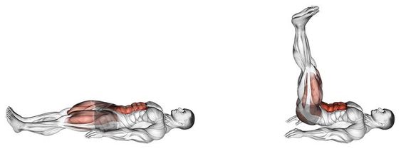 Упражнения за долната част на корема – лягате на земята, ръцете под дупето, повдигате с прави крака и пускате до земята със стегнат корем.