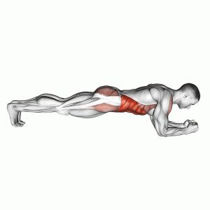 Планк с тежест за корем – заставате както е показано на картинката и държите стегнат корема една минута.