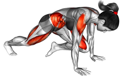 Упражнение за долната част на корема – заставате на четири крака, както е показано на снимката и ритате с редуване на краката хубаво към гърдите.