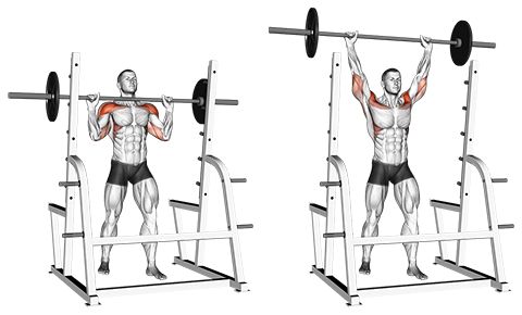 Упражнение с прав лост за рамо – хващате лоста малко по широко от широчината на раменете, изнасяте лактите на пред при пускане и пускате до горната част на гърдите.