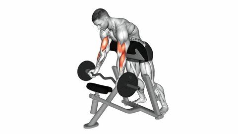 Бицепс на скотова пейка – облягате си гърдите на скотовата пейка, както е показано на картинката и правите пълни движения, като пускате бавно с бицепса на долу и сгъвате хубаво до горе без да отлепяме трицепса от пейката.