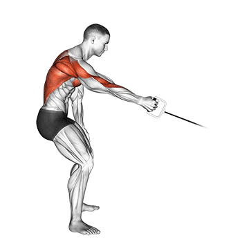 Гръб гребане с една ръка от скрипец или ластик – поставяте максимално ниско скрипеца, изправяте кръста, пускате хубаво на пред, така че да усетите разтягане на гърба и дърпате към долната част на корема като гледате възможно най – малко да натоварвате бицепса.