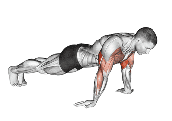 Лицеви опори за трицепс -  дланите и колената на земята, пръстите на ръцете сочат напред а лактите стоят до тялото.