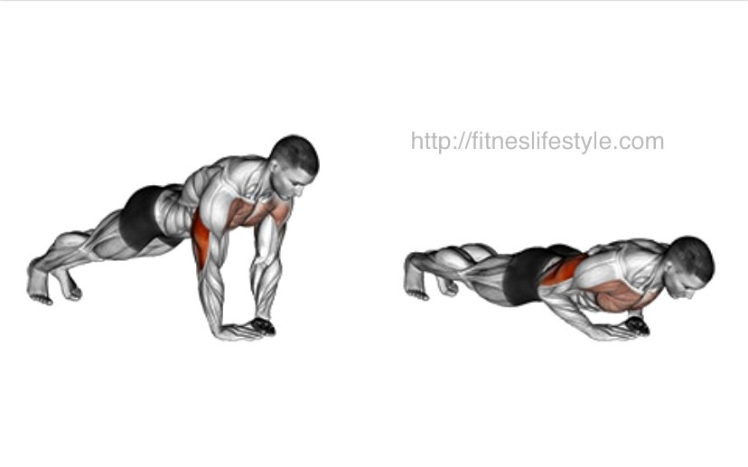 Упражнение за трицепс - поставяте пръстите на краката на земята, дланите на ръцете на земята(на широчината на раменете, палеца и показалеца на ръката да са допрени), пускате надолу, като лактите стоят до тялото а трицепса стегнат и при двете движения.