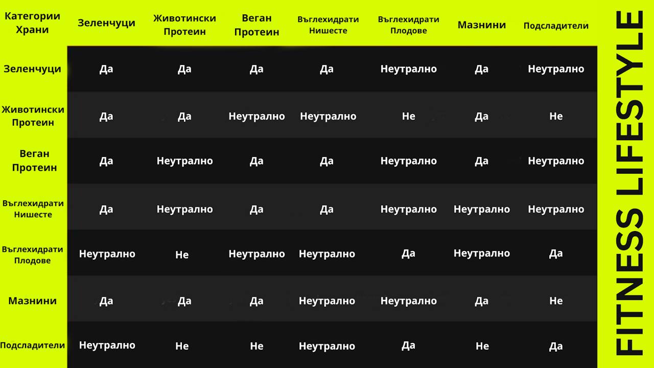 Таблицата за правилни комбинации от храни