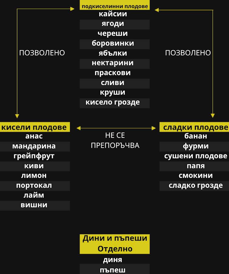 Таблица на правилните комбинации на плодове: