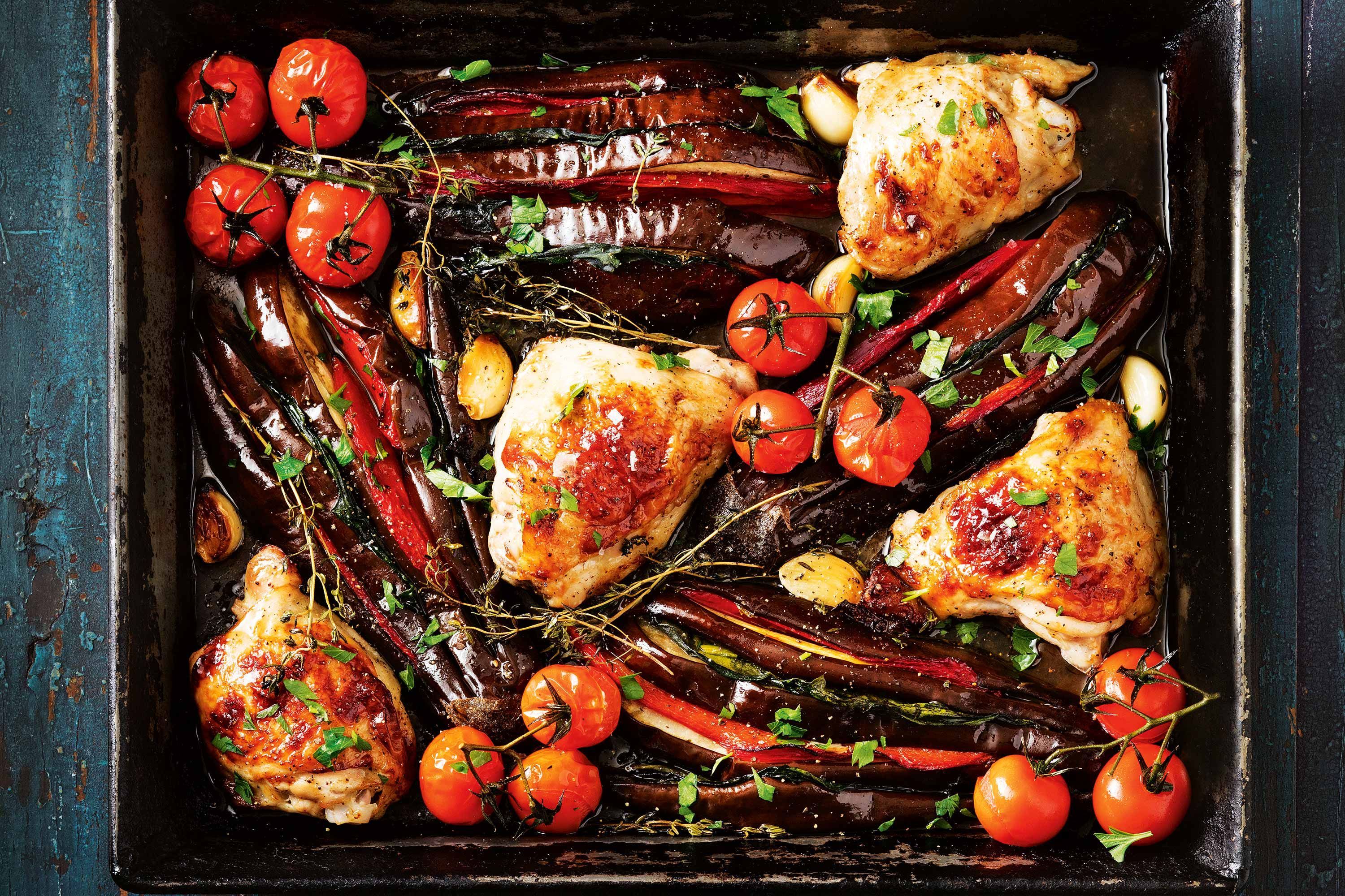 Печени пилешки гърди с патладжан и киноа салата