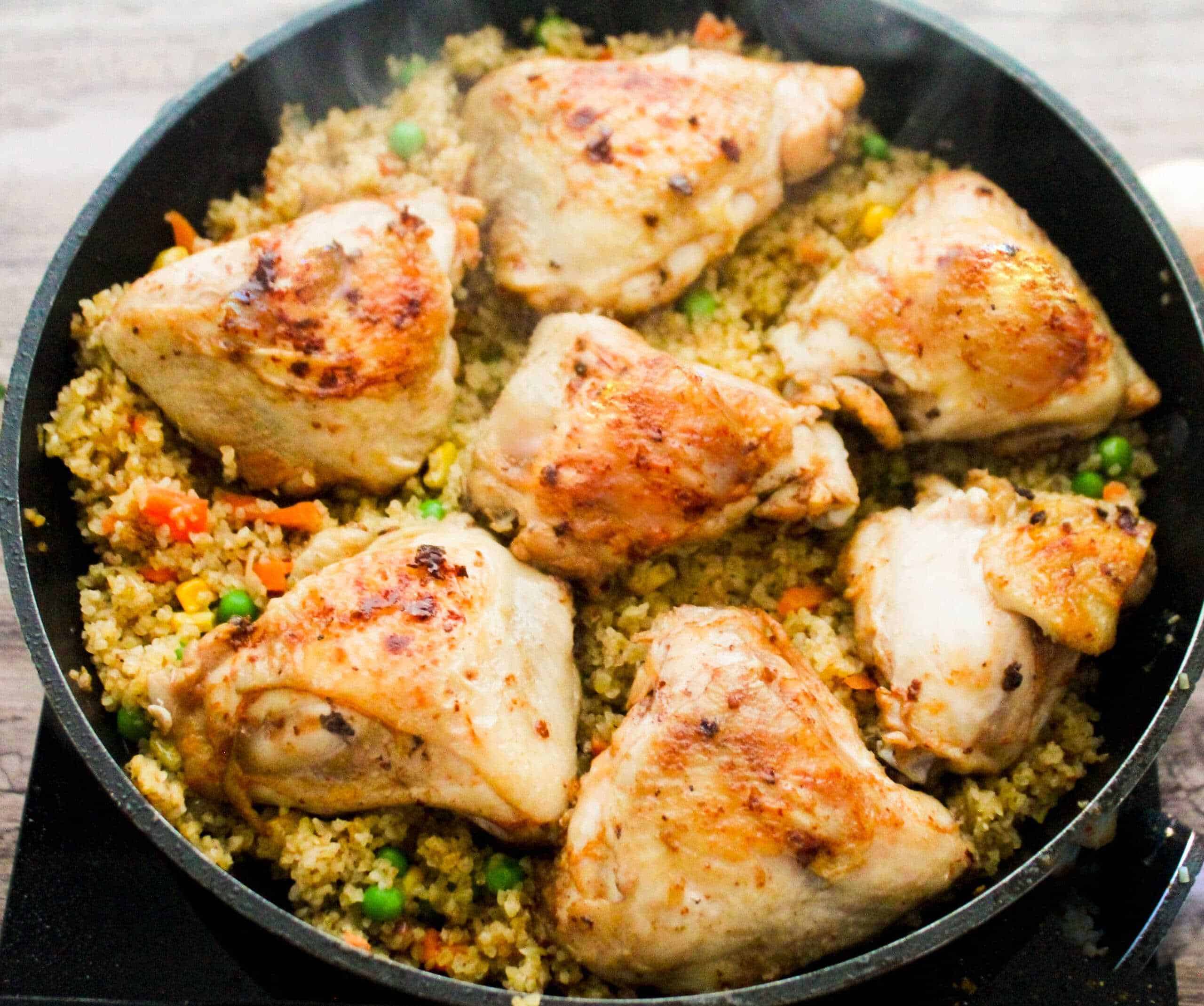 Пилешки таханки с пълнозърнест ориз и зеленчуци