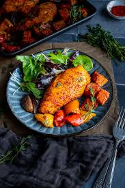 Пилешки гръдки с печени сладки картофи и зелена салата