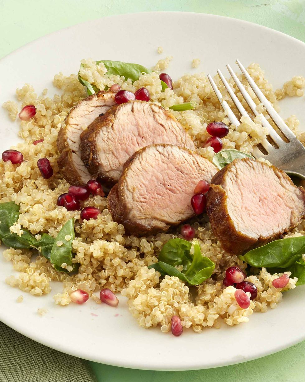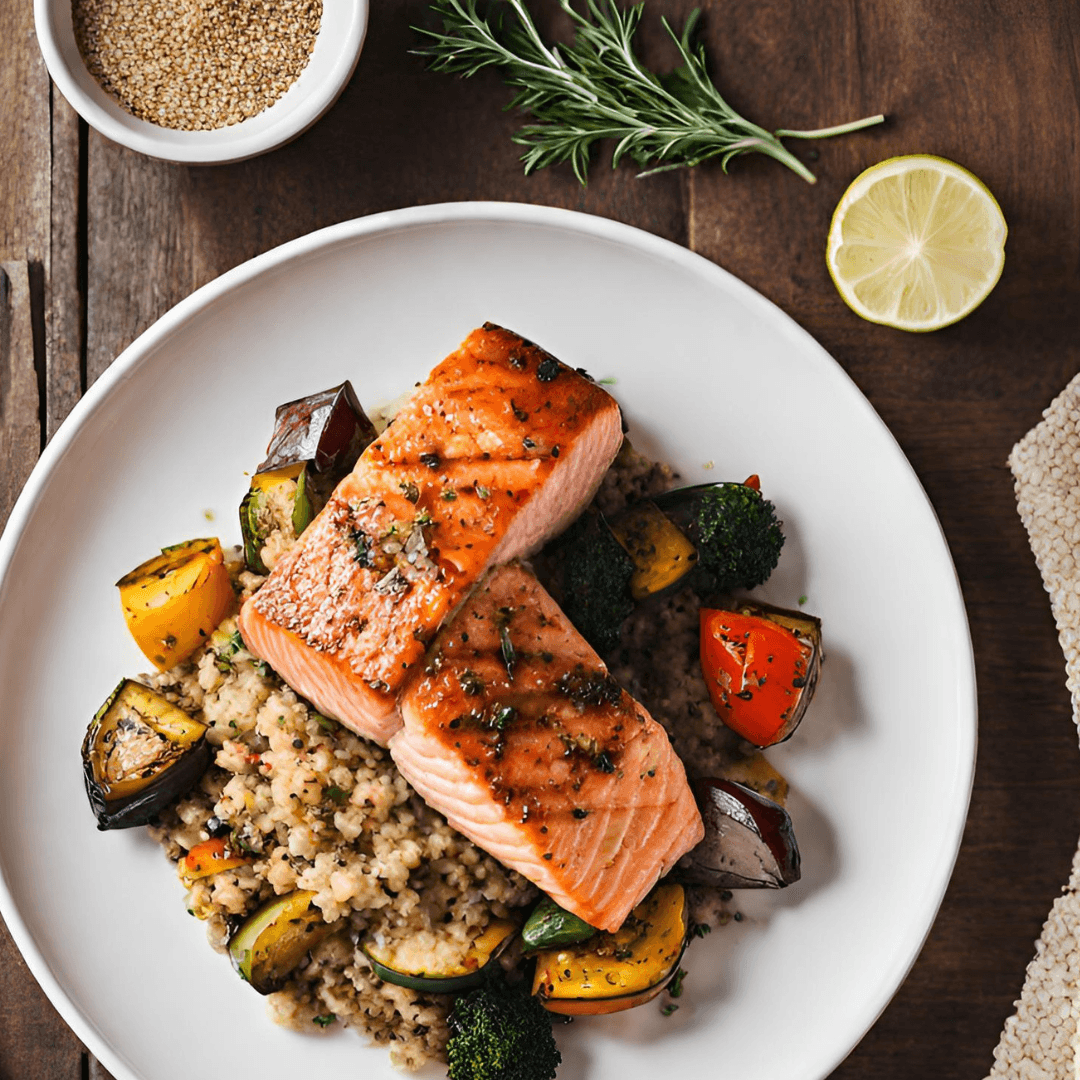 Туна с киноа и зеленчуци на скара за обяд.