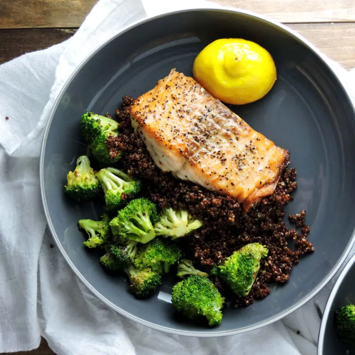 Сом с броколи и киноа