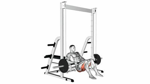 Хип тръст за дупе с прав лост на смит машина на хоризонтална пейка – поставяте лоста точно под хълбоците, петите прибрани към дупето, пръстите на краката леко встрани, пускате хубаво до долу и избутвате максимално до горе с дупето. Важно е движението да е само в кръста, а не с цялото тяло.