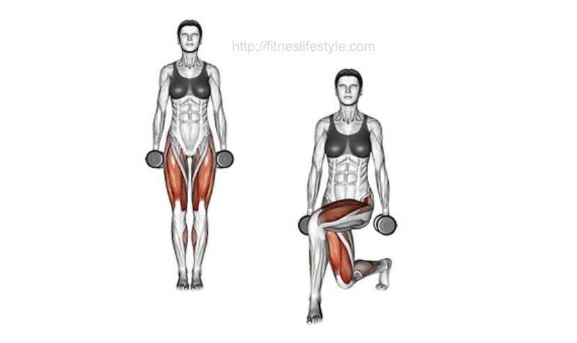 Напъди в страни – стъпвате назад и леко в страни, както е на снимката, клякате като предния крак остава под прав ъгъл (без да изнасяте коляното напред) и редувате краката.