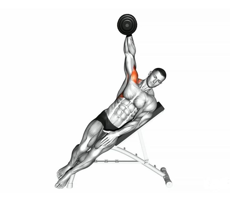 упражнение за средно рамо на пейка с наклон - облягате се на пейката, повдигате дъмбела до горе и пускате отстрани на тялото.
