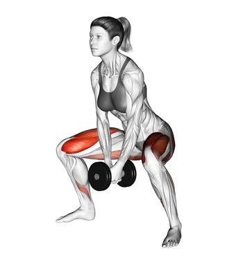 Сумо клек с дъмбел – разкрачвате се малко по широко от широчината на раменете, пръстите на краката сочат встрани и като клякате колената трянва да отиват в посока на пръстите на краката.